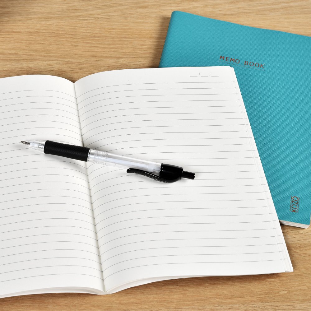 KOZO notesbog eller tyndere notesbog A5 med omslag i trendy i mange farver . Passer godt til KOZO penalhus og andre produkter i sortimentet. Hæfterne indeholder hver 60 linjerede sider. Holdbar og stilfuld syet binding. Papiret er cremefarvet og har en vægt på 70 g. Leveres i en pakke med 3 stk. Perfekt til studerende, forskellige farver til forskellige fag eller på arbejde til små noter. Tynde og fleksible hæfter, der ikke vejer meget og er nemme at putte ned i en rygsæk eller etui til bærbar computer.