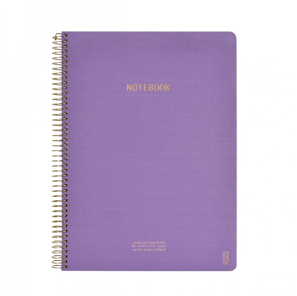 KOZO Premium Notesbog er absolut en af de flotteste notesbøger på markedet. Det kraftige lærreds omslag med smukke detaljer i bronze og den kraftige topspiral, også i bronze, gør at den er perfekt at skrive og notere i, både når du har den liggende på knæet eller endda stående uden at have støtte. Og selvfølgelig en smuk indretningsdetalje til dit skrivebord. Det giver en luksuriøs følelse at skrive på det cremefarvede 100 g. papir. Samtlige sider i notesbogen har en datolinie øverst til højre, enkelt og praktisk. Matcher med alle andre KOZO skrivebordsartikler i samme farvenuancer.
