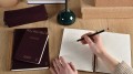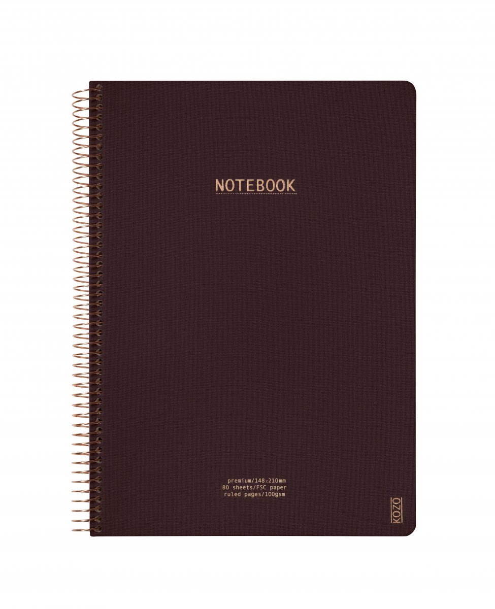 KOZO Premium Notesbog er absolut en af de flotteste notesbøger på markedet. Det kraftige lærreds omslag med smukke detaljer i bronze og den kraftige spiral, også i bronze, gør at den er perfekt at skrive og notere i, både når du har den liggende på knæet eller endda stående uden at have støtte. Og selvfølgelig en smuk indretningsdetalje til dit skrivebord. Det giver en luksuriøs følelse at skrive på det cremefarvede 100 g. papir. Samtlige sider i notesbogen har en datolinie øverst til højre, enkelt og praktisk. Matcher med alle andre KOZO skrivebordsartikler i samme farvenuancer.