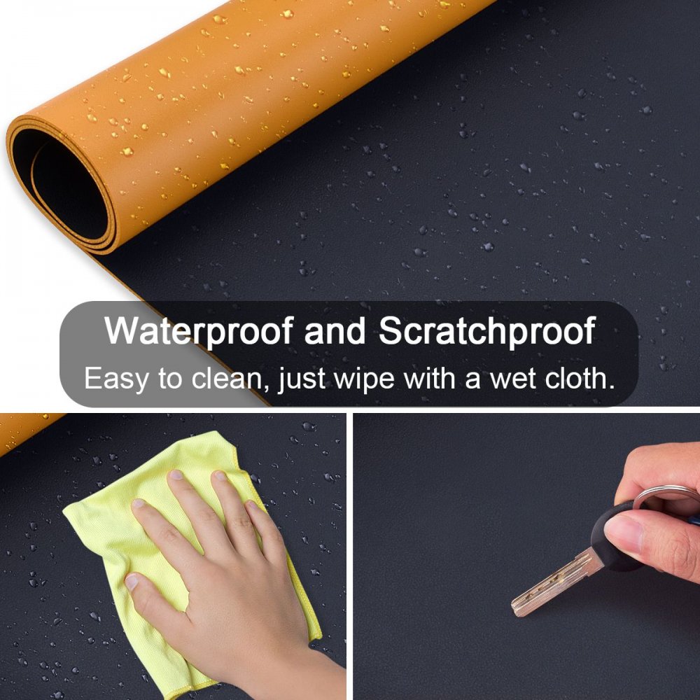 Skrivebordsunderlæg i slidstærkt kunstlæder (PU). Dobbeltsidet, vælg farve efter humør eller match til omgivelserne. Med en længde på 90 cm får både tastatur, mus og kaffekop plads. Overfladen er enkel at holde ren med en fugtig klud. Takket være det formbare materiale kan underlægget rulles sammen, så det optager minimalt med plads og kan opbevares uden at fylde. Perfekt på bl a hjemmekontor som pakkes ned, når arbejdsdagen er slut.