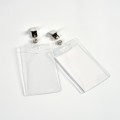 Kongresmærker 60x90mm stående format med vridbar klemme på strop og indstik for tydelig og sikker indentifikation. Fremstillet af holdbar blød plast og kan benyttes flere gange.
