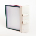 Den er lavet af lakeret metal med en lysegrå struktureret overflade. Displayet kræver minimal plads, da det kan monteres på enhver ledig væg i arbejdsmiljøet.